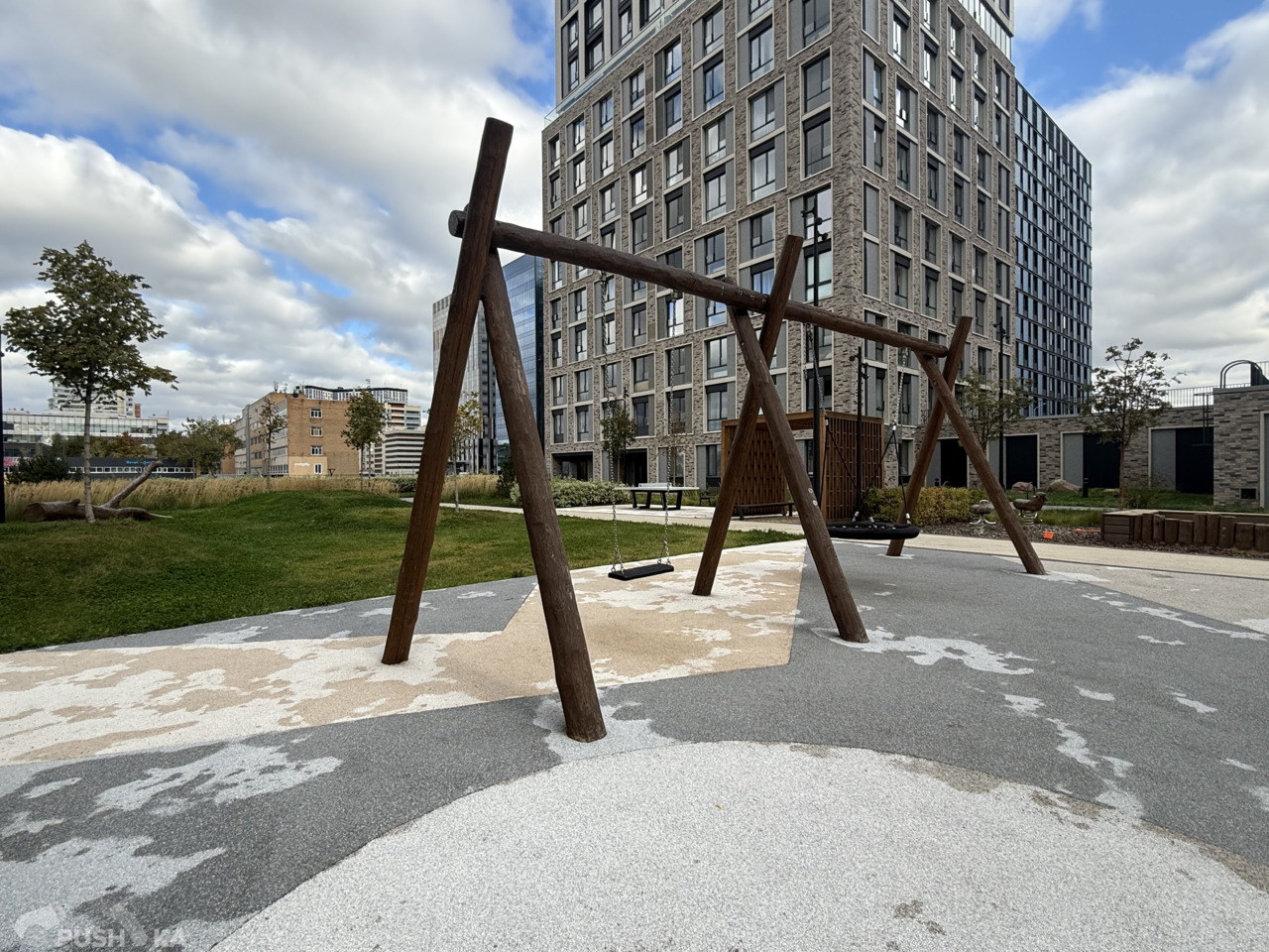 - Пешеходные дорожки, лавочки, зоны отдыха для всех возрастов, детские площадки, игровые и спортивные, экотропа, беговые и велосипедные дорожки.