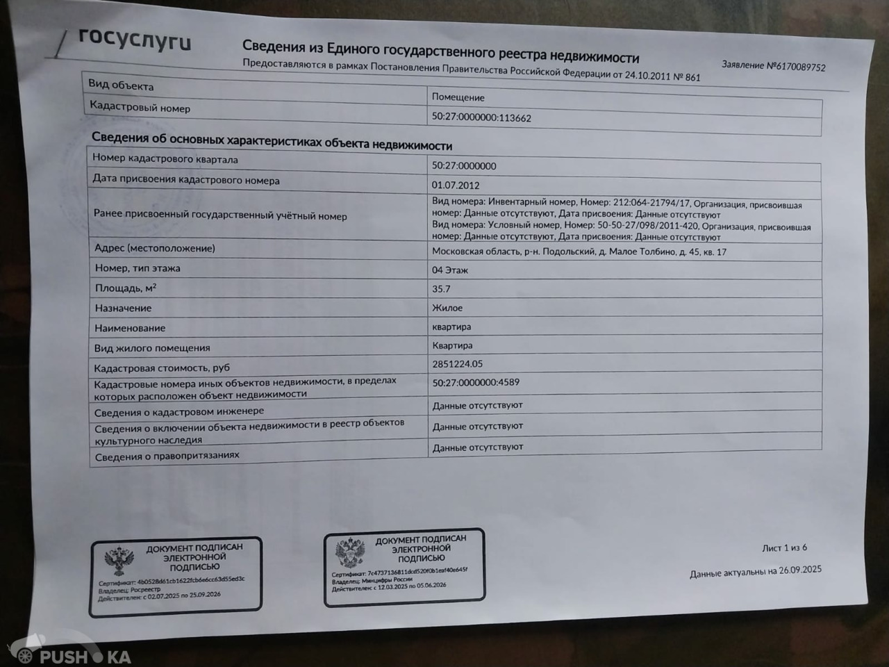Кадастровый номер | 50:27:0000000:113662 |