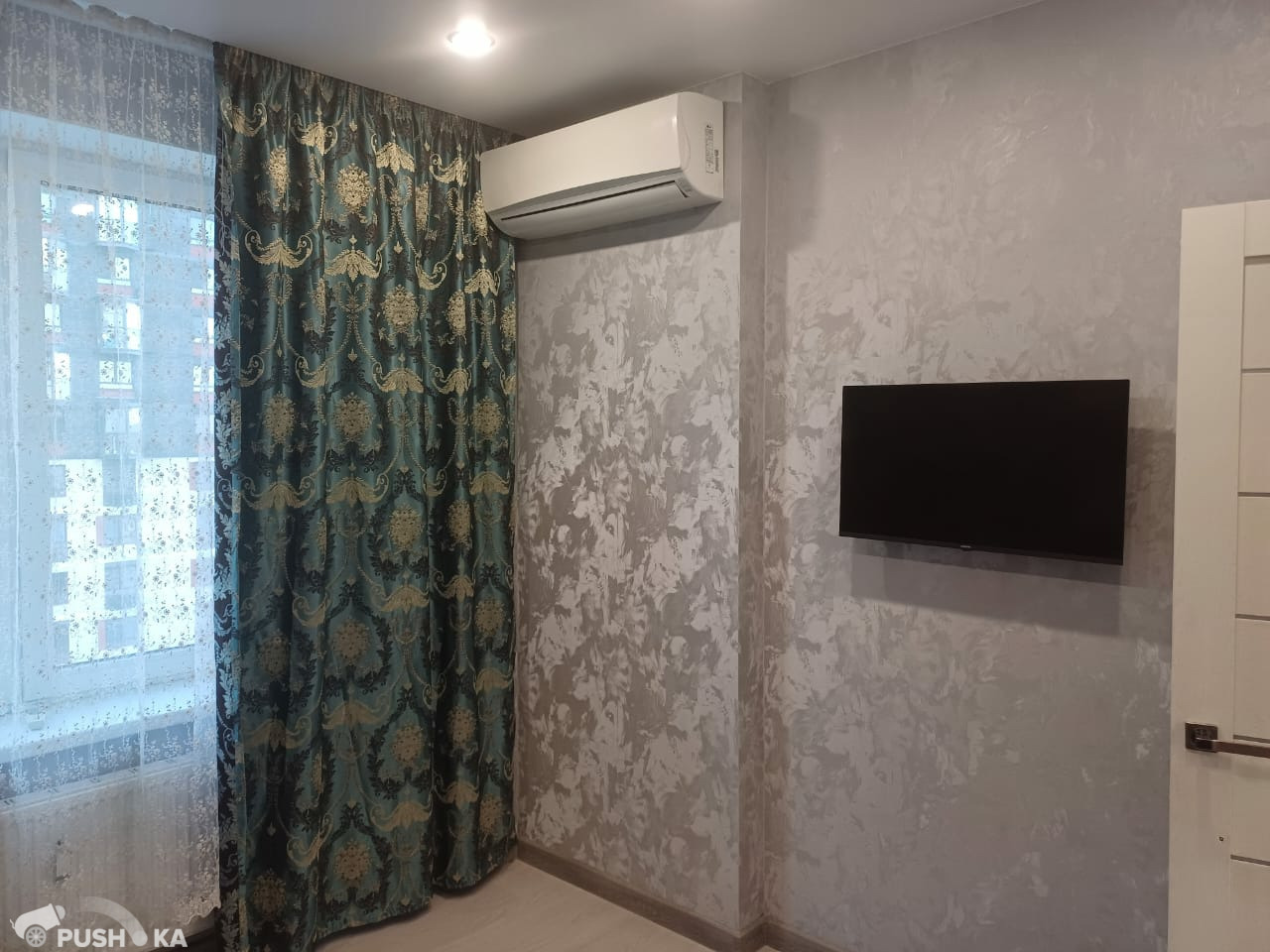 в спальне раскладывающийся диван, кондиционер, стиральная машина.