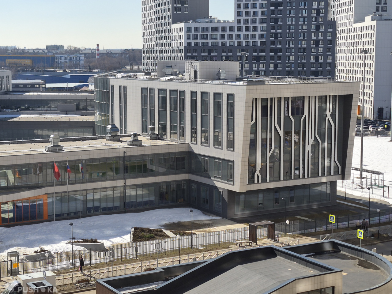 Школа, детский сад во дворе. Первые этажи -супермаркеты, коммерческая инфраструктура.