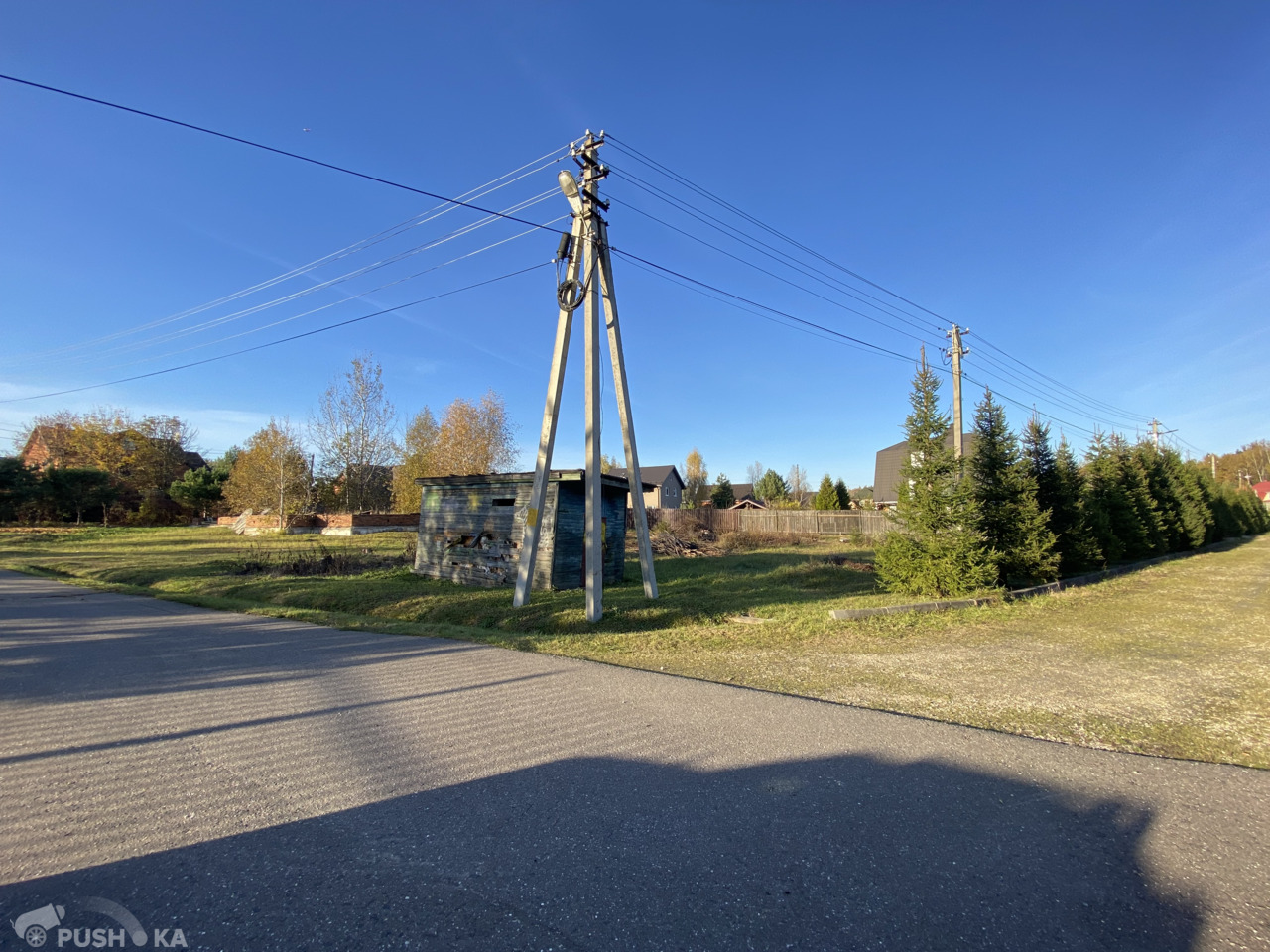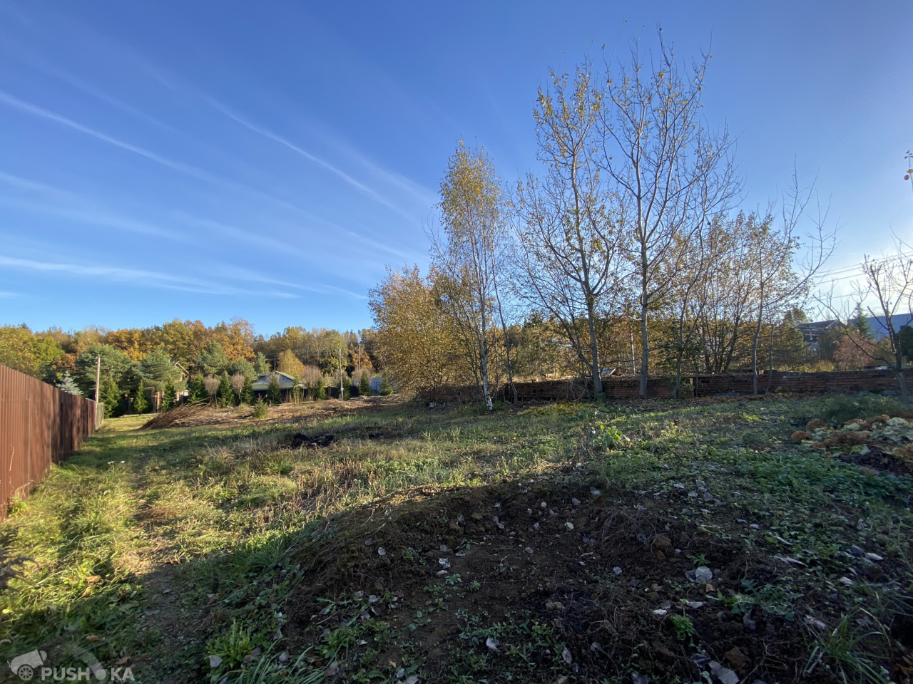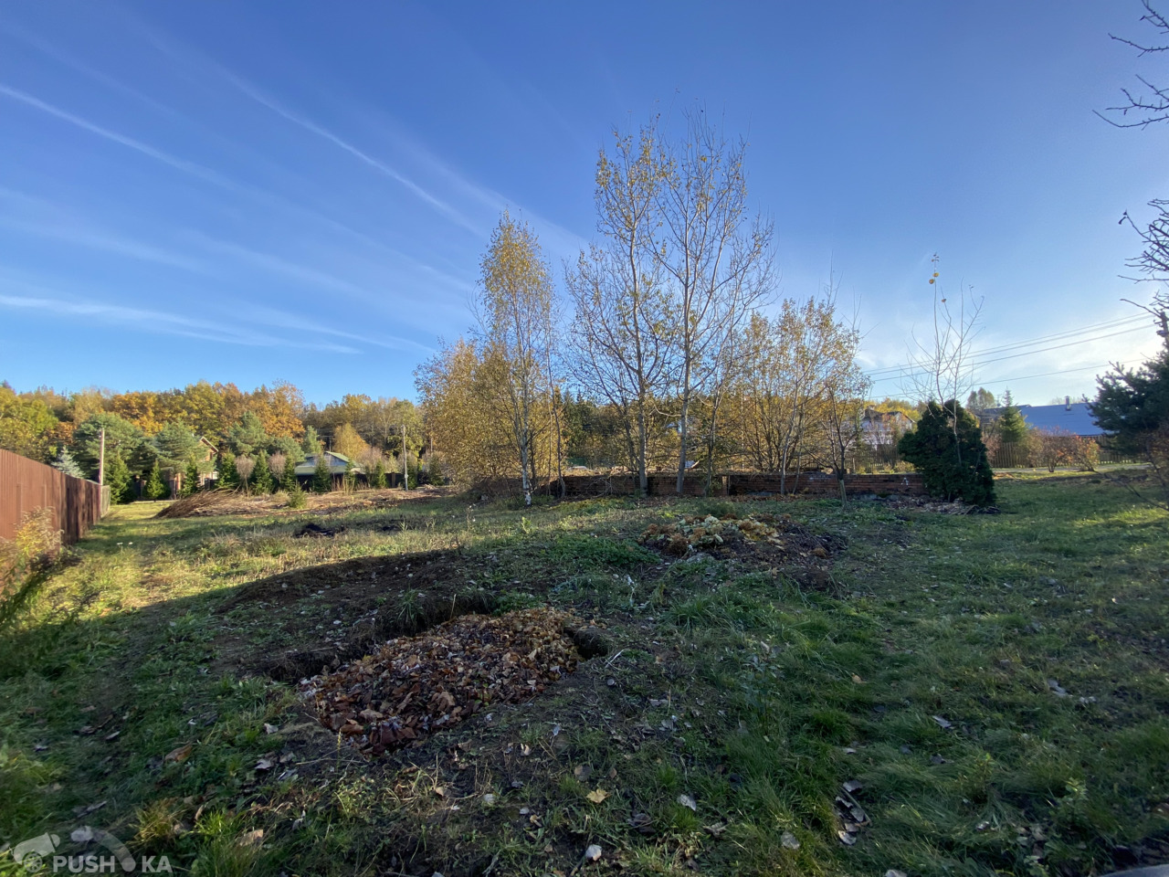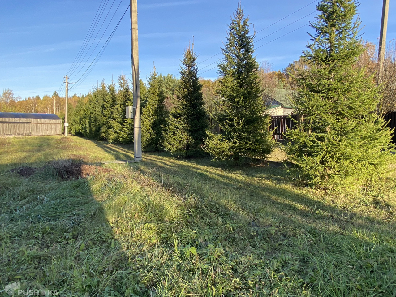 С двух сторон участка высажены ели и сосны. Все соседи давно построили свои дома.